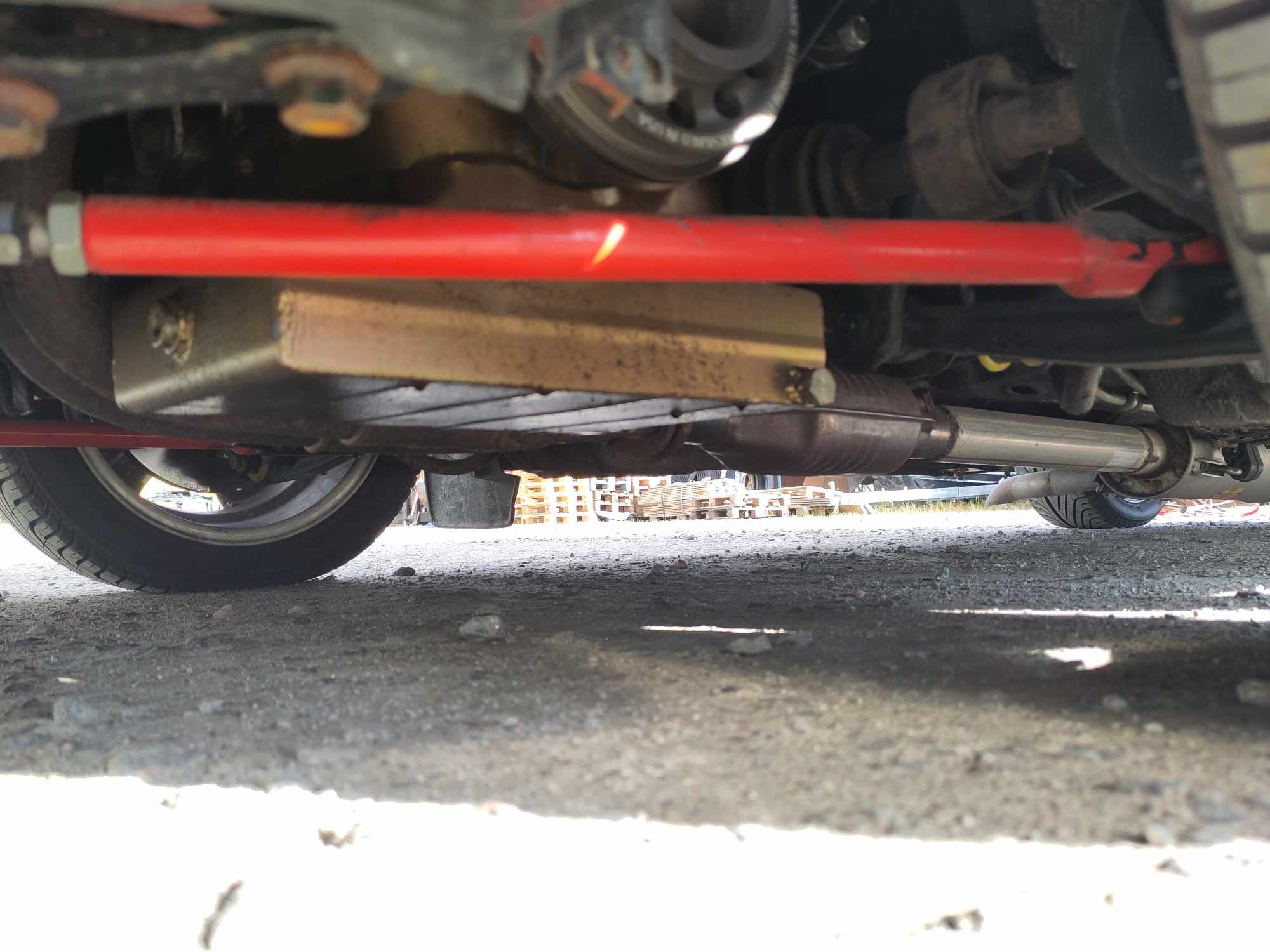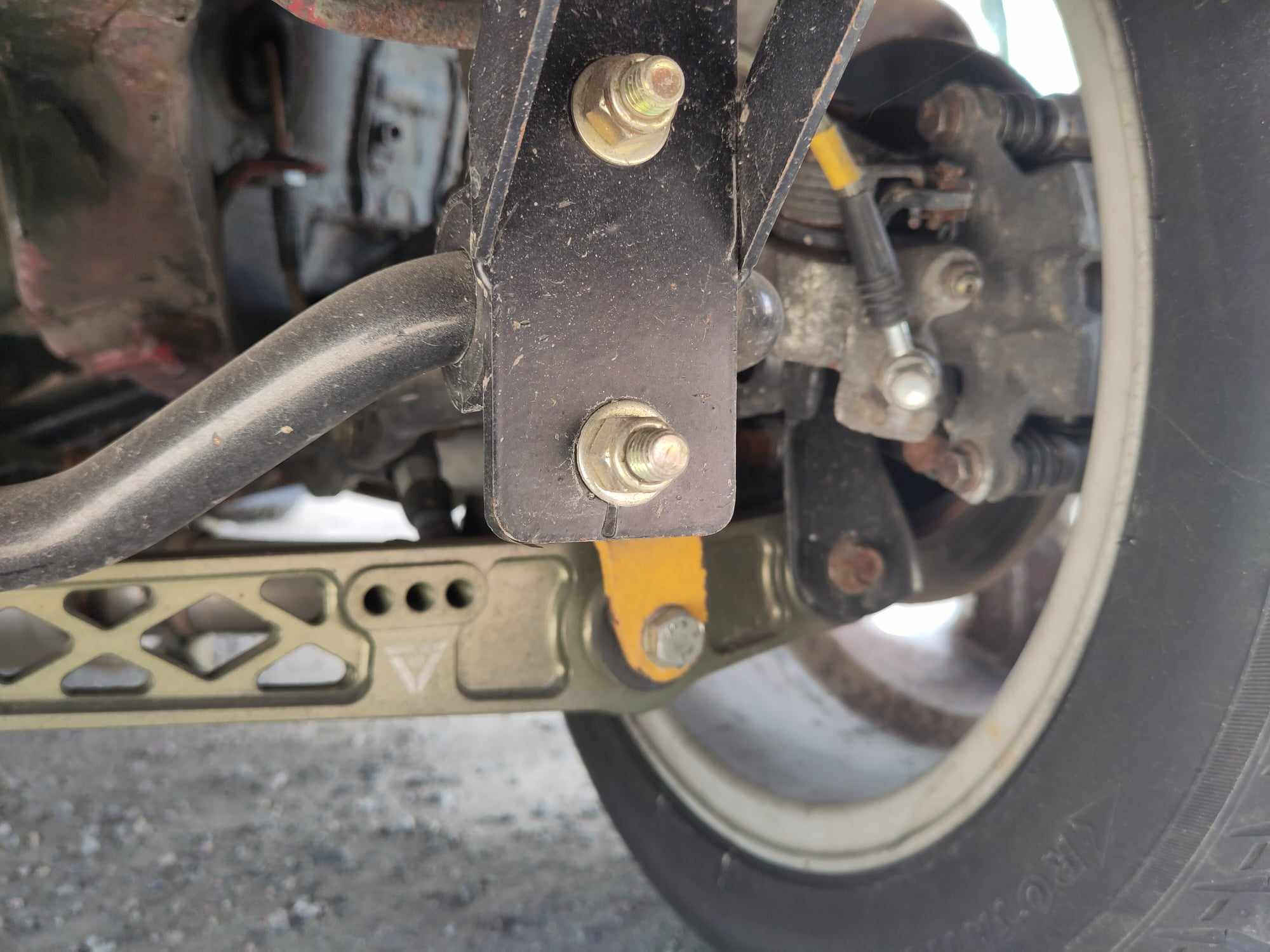 De stora wishbone bussningarna är bytta till ledlager. (BLOX Racing Spherical trailing arm bearings)