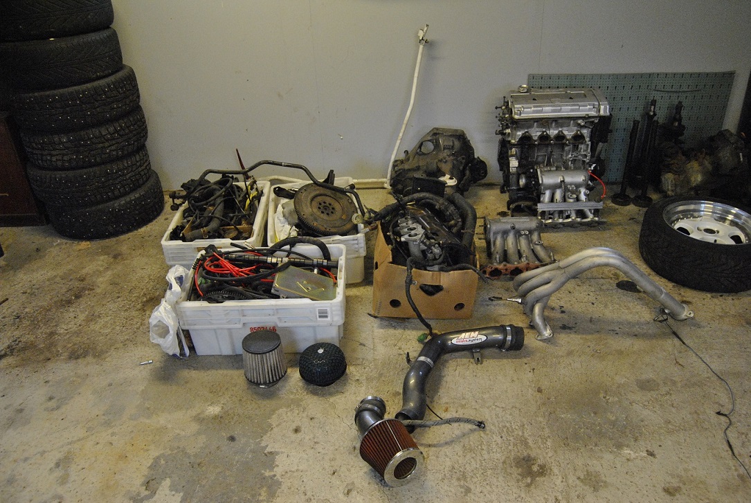 B16A1 / VT - 150HK komplett med låda, ecu, kabelhärva, axlar etc. ( Helt isär skruvad och tvättad ) 300€