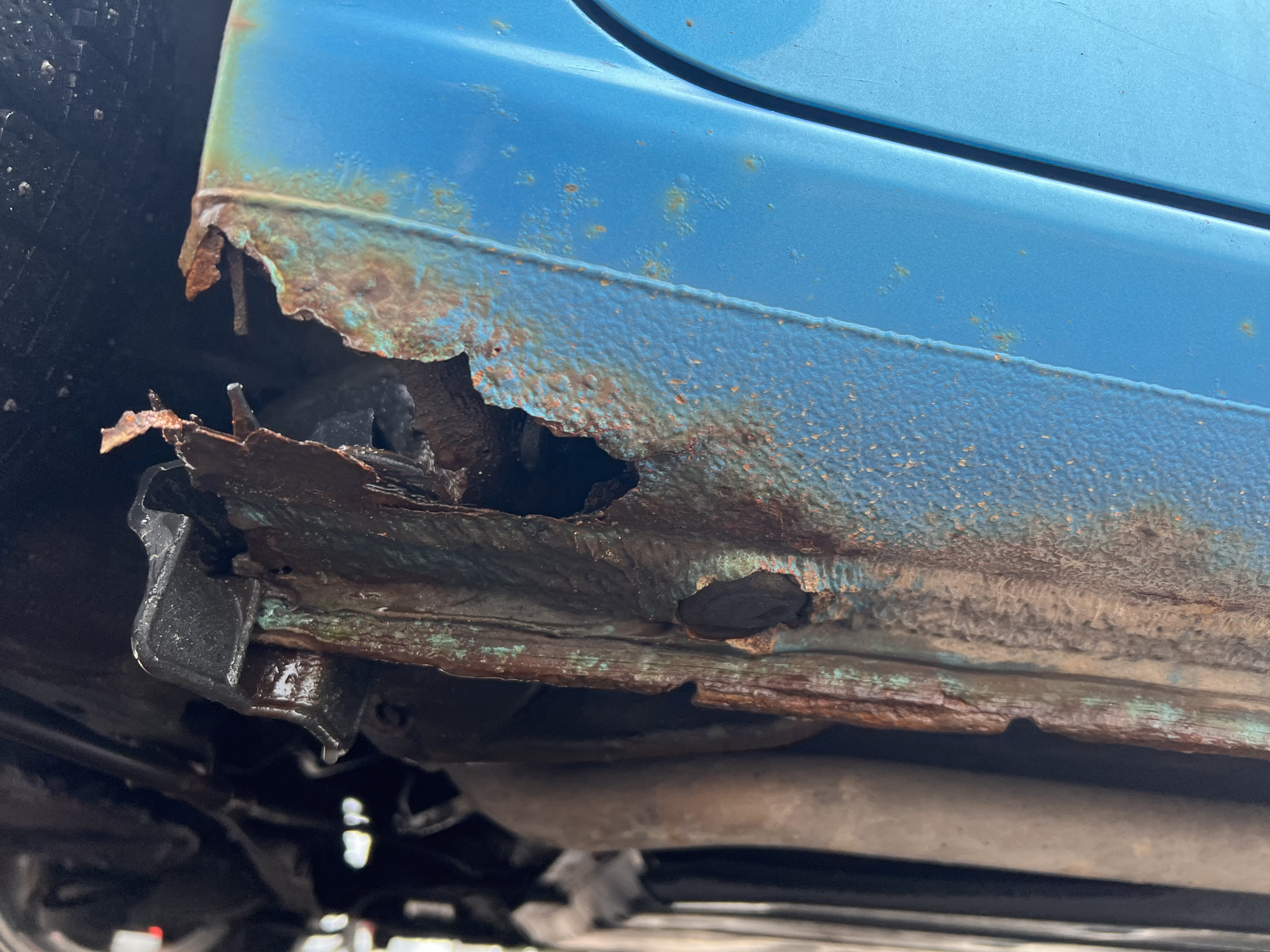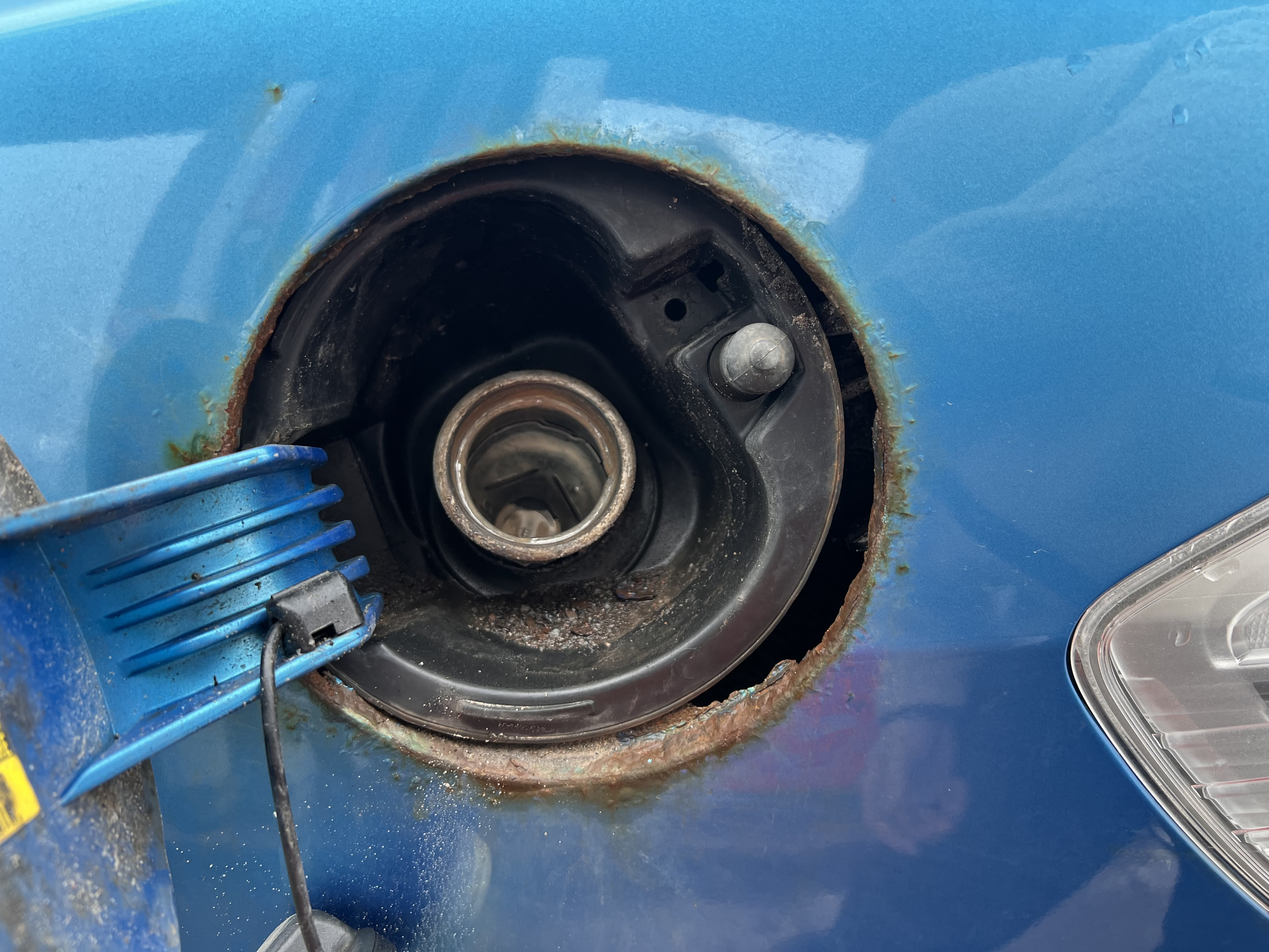 Cancern är bekräftad i Jazzen. Tanklocket sitter kvar med guds nåde. Skärmkanterna bak har giftet i sig och tröskeln höger bakkant har börjat bli illa åtgången.