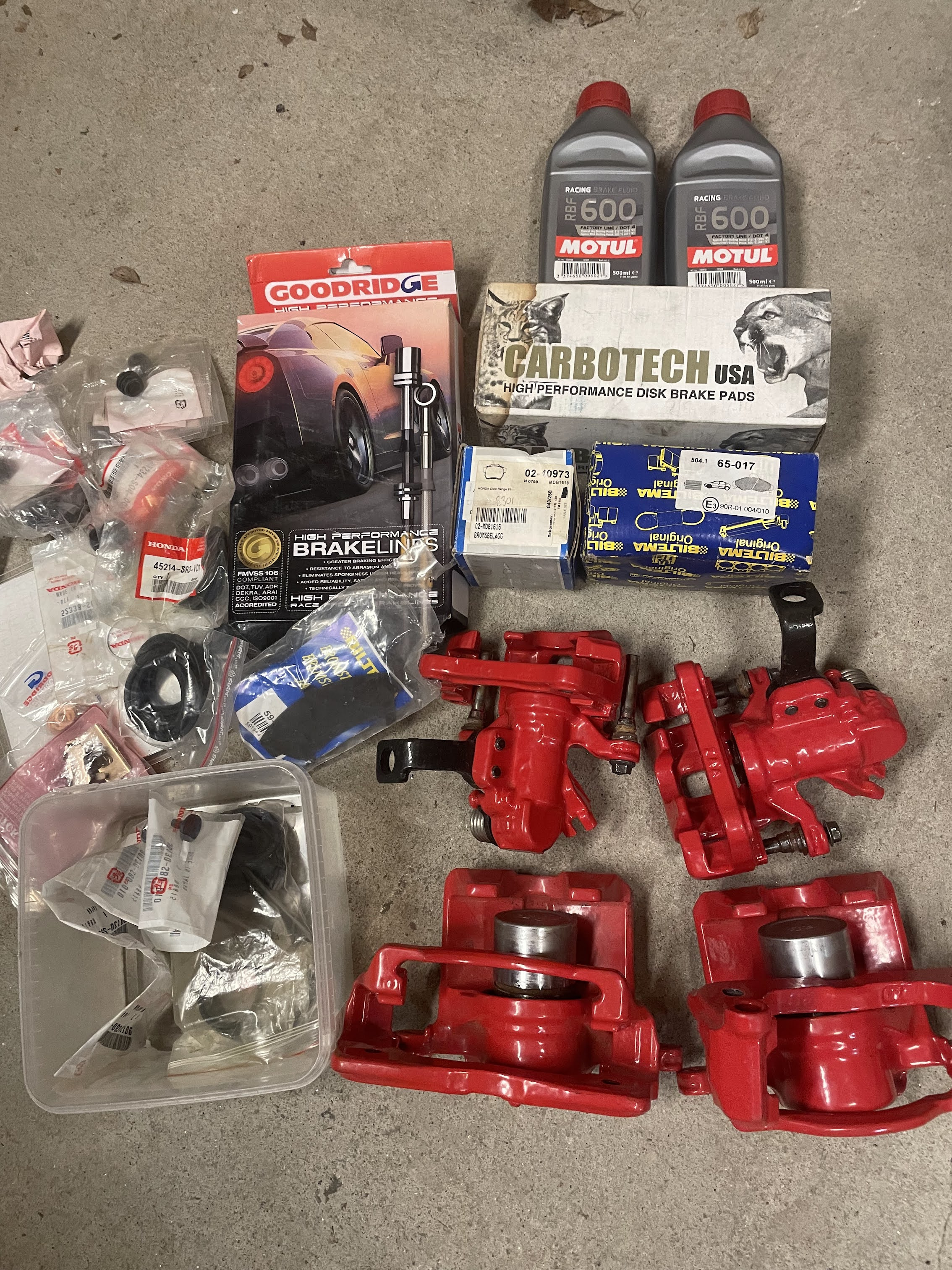 Alla damasker, o-ringar, nipplar, stålomspunna bromsslangar och bromsbelägg finns nya i förpackning
