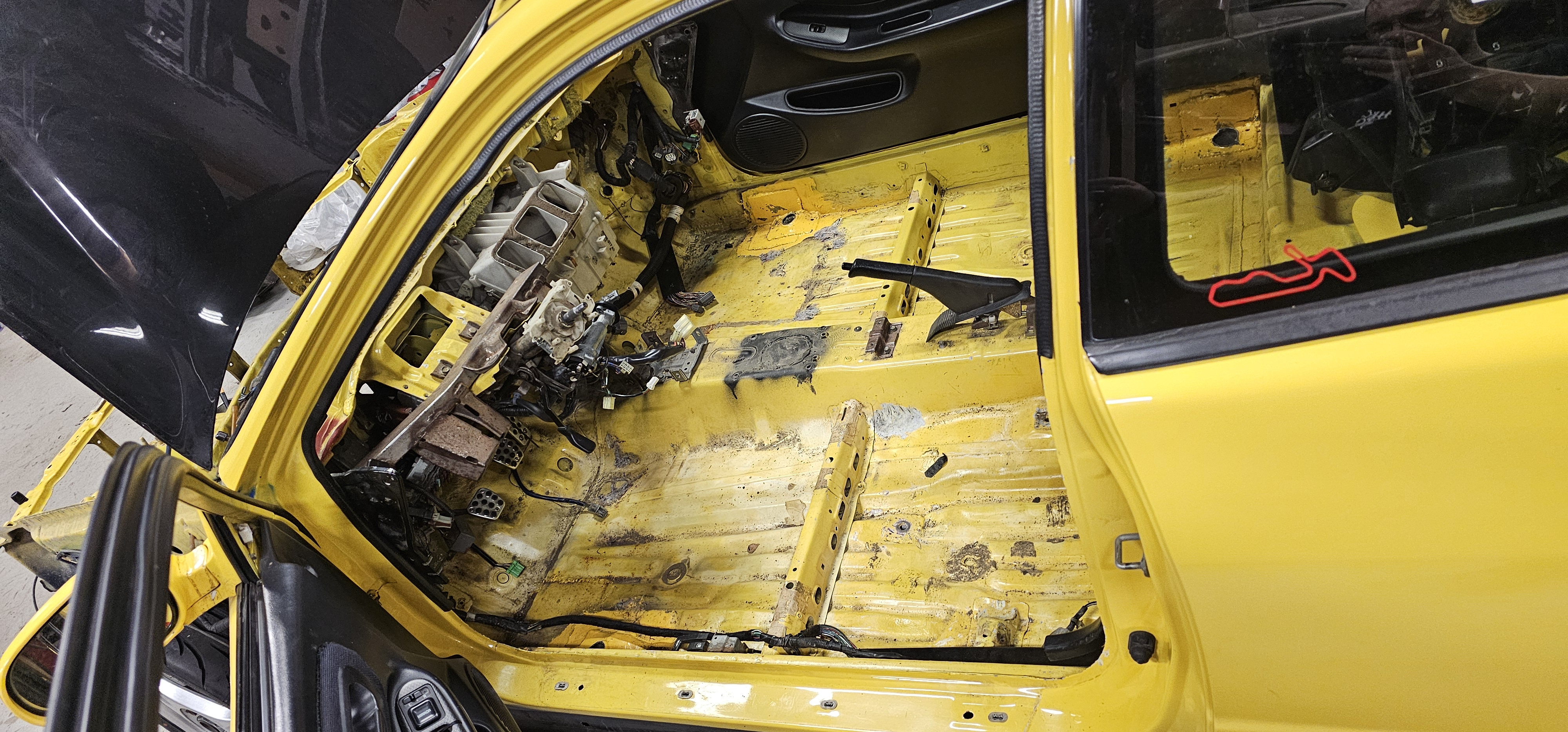 Komplett inredning förutom säte och baksäte, momo ratt... bilen hade bur innan som är urkapad, behöver jämnas lite mer med golvet om man vill, annars syns ju inte under mattan.