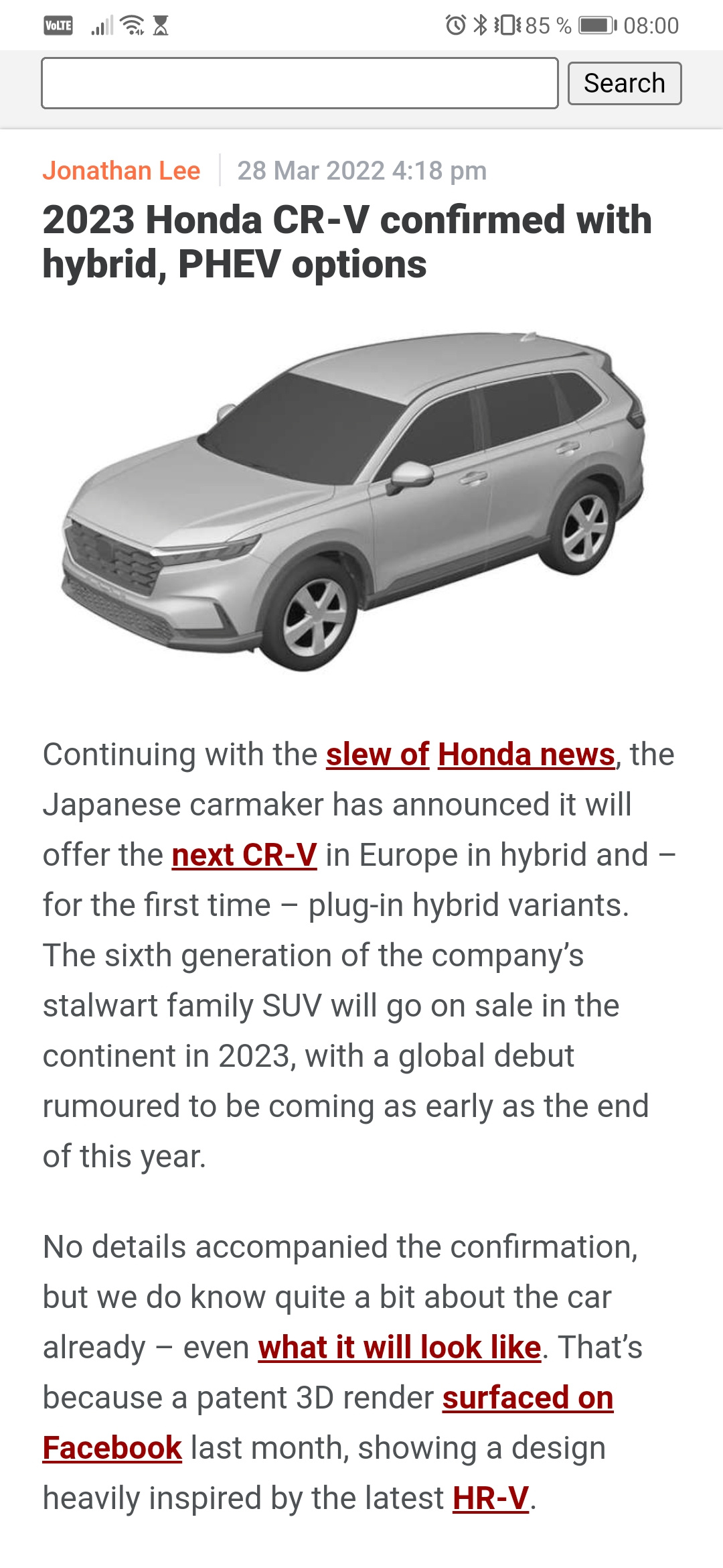Blev väldigt glad att läsa om CR-V som plug-in, längtar efter pressmeddelande med slutgiltiga bilder och info!
